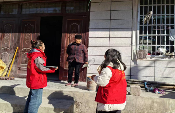 图为青坪镇村干部、志愿者组成宣传小分队,走村串户宣传秸秆禁烧限烧、森林防灭火知识
