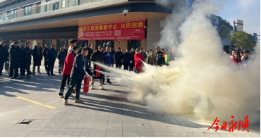 演练现场,消防员对演练进行详细讲解,重点介绍芙蓉镇消防救援应急预案及消防安全知识培训,明确景区内消防栓位置和消防器材使用,对景区隐患排除治理进行要点分析与预防教育,参训人员使用灭火器材对燃火点进行灭火;随后进行演练,模拟景区内突发“火灾”,烟雾弥漫,现场工作人员第一时间发现火情,迅速启动消防报警系统并拨打119报警,消防部门接到报警后,立即派出消防队员赶赴现场,迅速展开灭火行动,经过紧张的灭火作业,“火势”迅速得到控制并被扑灭。
