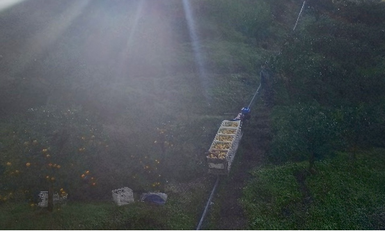 永顺融媒11月27日讯(全媒记者 邓旭)初冬的小溪镇,柑橘迎来丰收。在该镇的柑橘种植基地,以往依靠人工肩挑背扛的场景已不复见,取而代之的是一辆辆沿山间轨道平稳运行的运输车。