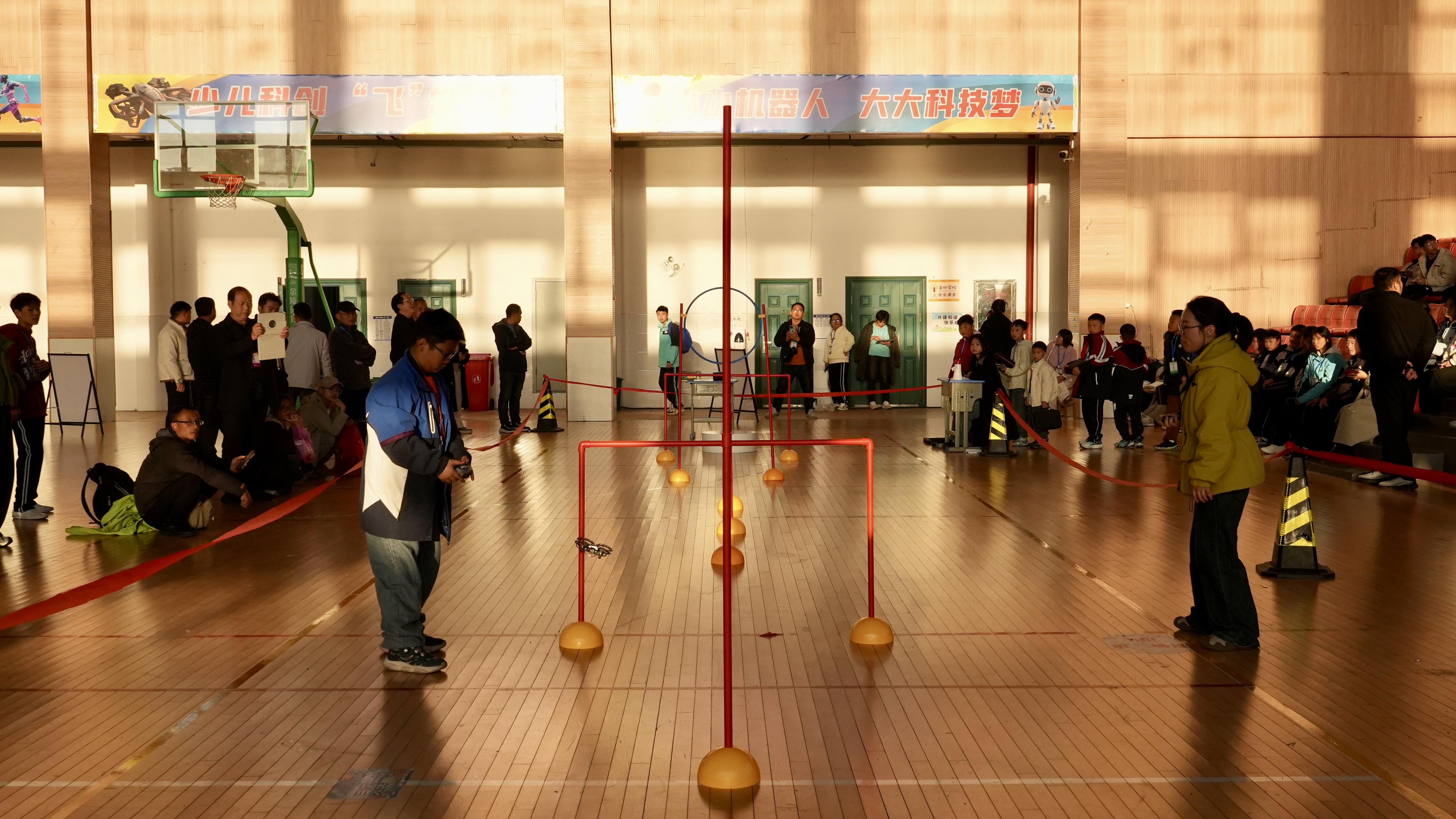开幕式现场气氛热烈,精彩纷呈。国歌嘹亮,彩旗飘扬;舞姿朝气,航模翱翔。随后主会场与两个分会场同步展开竞赛:主会场开展创新项目终评、气球滞空挑战赛及科技趣味体验;分会场分别进行航空航天模型单人赛、星际穿越挑战赛、纸飞机、数字创作、计算思维竞赛与科学思维笔试等竞技,选手们在理论与实践中全面展现创新能力,体验科技魅力。