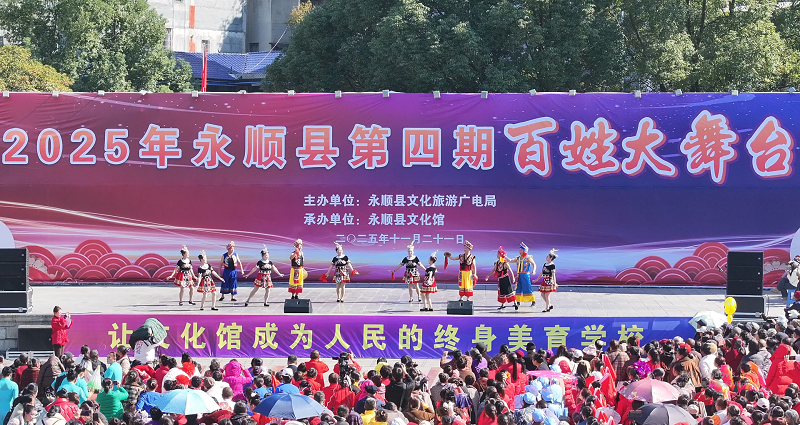 永顺融媒·今日永顺客户端11月21日讯(全媒记者 邓旭)11月21日,永顺县第四期百姓大舞台燃动冬日,一场聚焦本土民族文化的文艺演出精彩上演,为现场群众带来沉浸式的文化体验。