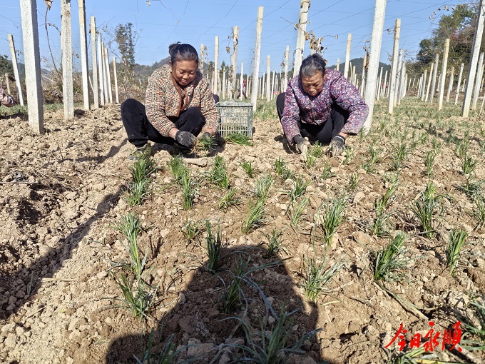 11月25日,在永顺县松柏镇心印村一猕猴桃基地里,村民们在种植麦冬。这是永顺县绿韵生态发展有限公司的基地,公司负责人刘万云介绍:麦冬有着滋阴润肺,养胃生津,清心除烦等功效,属于名贵中药材系列,生长环境喜阴,易种,成活率高,市场前景好,这样套种,增强了土地运用率,让基地效益翻倍增长。通讯员 罗远程 雷夏铭 摄