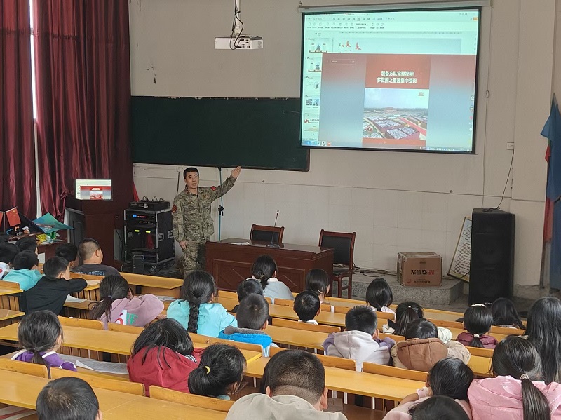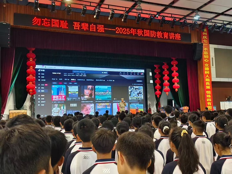 活动中,退役军人代表熊帅从“国防力量的组成”“我国现役部队军种”“主流武器装备”“少年当自强,争当祖国铁脊梁”几方面进行授课,他通过祖国国土面积、疆域特征等基础知识的互动问答,配合丰富的图片与详实数据,以今昔对比的方式,引导学生将爱国之情转化为报国之行,以实际行动传承红色基因。
