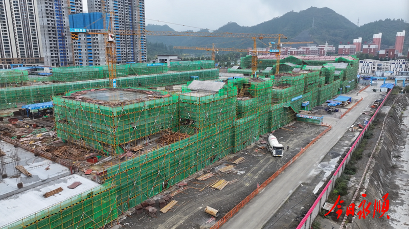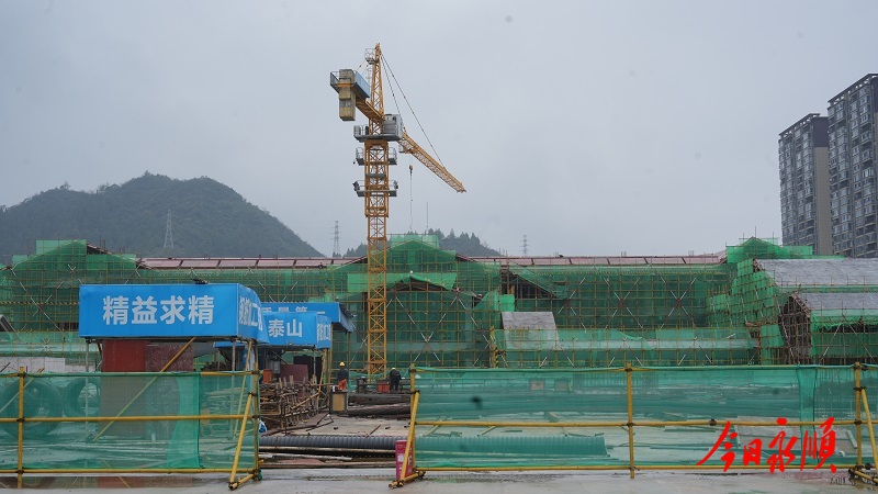 施工现场塔吊林立、机器轰鸣,一派热火朝天的建设景象。工人们正在室内加紧进行砌墙作业,科学划分各功能区域,消防管道安装等配套工程也在同步推进。据现场负责人王兴师介绍:“目前项目正在进行室内隔墙抹灰和消防安装工作,下一步将重点推进景观亮化及外墙门窗安装工程,预计2026年10月可向社会开放投入使用。”