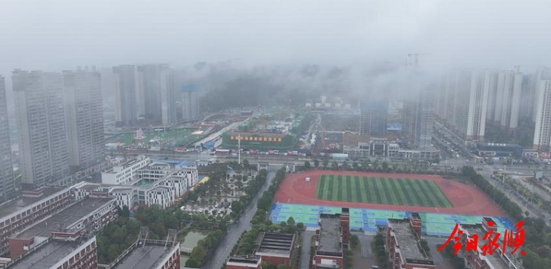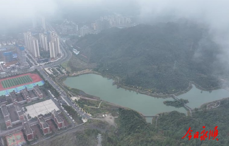这场秋雨让新城的山体公园愈发清新。经过雨水冲刷的草木青翠欲滴,游步道在雾气中蜿蜒,空气里弥漫着泥土与青草的湿润芬芳。登上公园观景台远眺,雾气在山路间缓缓流动,现代建筑与自然绿意无缝衔接,生态与发展在此和谐共生。