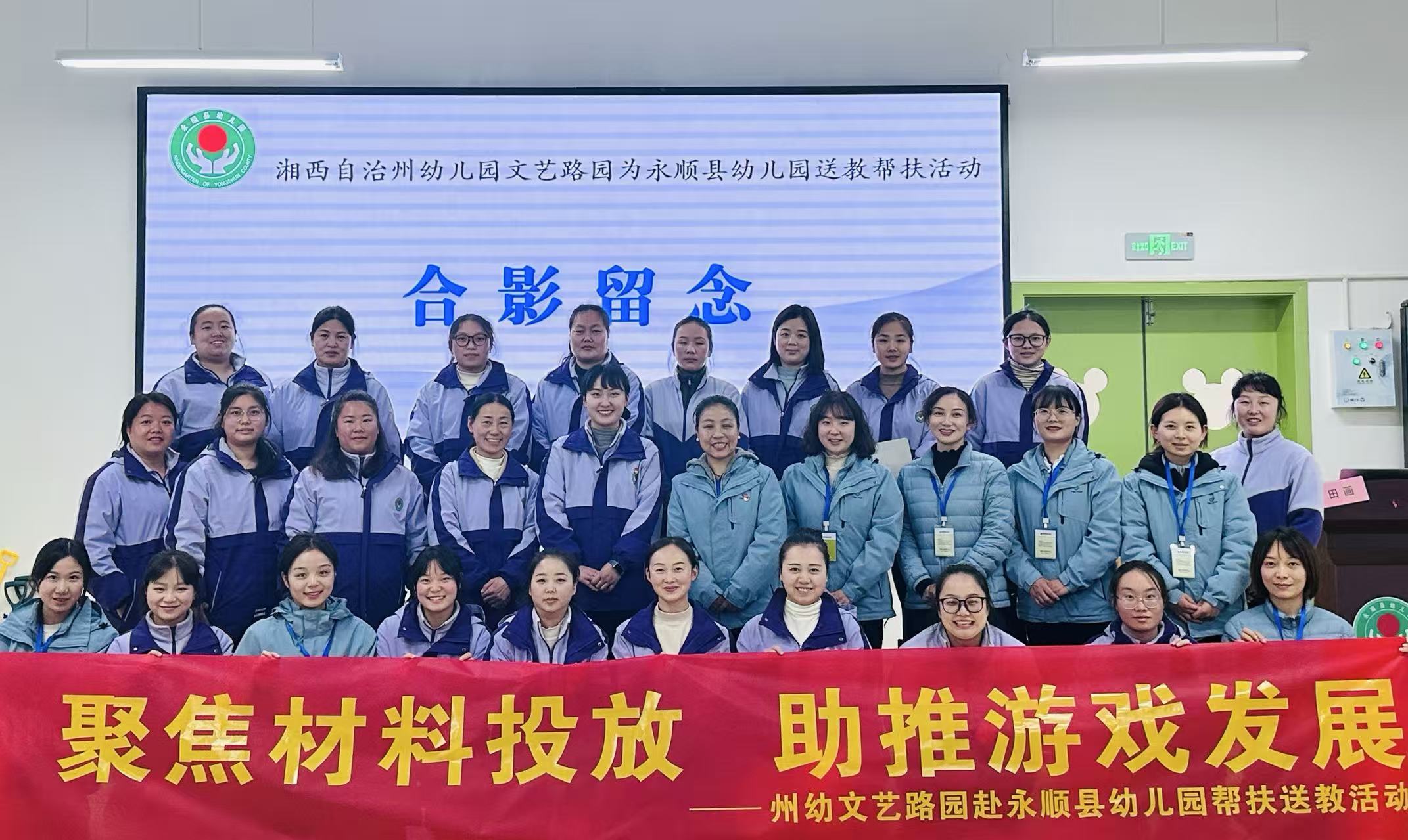 12月18日,湘西州幼儿园文艺路园赴永顺县幼儿园开展帮扶送教活动。活动通过现场观摩、即时研讨、案例分享及专业引领等形式展开。州幼文艺路园不仅为永顺县幼儿园送培送教,还送上了自主游戏中沙水池的系列材料。此次活动,进一步促进了两园间的交流与合作,为提升湘西州学前教育质量贡献了积极力量。通讯员 彭丽君 摄