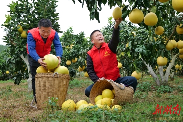 连日来,凤凰县菖蒲塘村新时代文明实践志愿者帮助村民采摘柚子,助力乡村振兴。吴东林摄