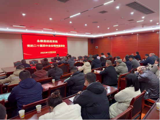 永顺融媒12月25日讯(通讯员 米微 彭小慧)12月25日,永顺县统战系统举行学习贯彻党的二十届四中全会精神专场宣讲会,推动党的二十届四中全会精神在统一战线领域走深走实、落地见效,切实将全县统战系统干部职工及各界代表人士的思想和行动统一到党中央决策部署上来。县委常委、县委统战部部长、县委宣讲团团长谢深洪作专题宣讲报告。