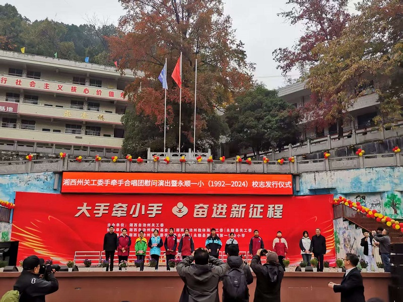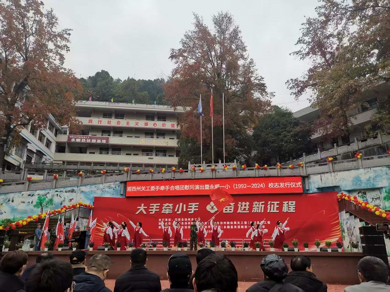 永顺融媒12月2日讯(通讯员 黄树林 王帆)12月2日,湘西州关工委手牵手合唱团一行七十余人走进永顺灵溪一小开展“大手牵小手 奋进新征程”主题慰问演出活动。